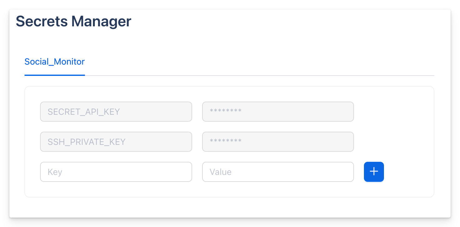 Using "Secrets Manager" You can save app-specific secrets using Octostar App editor. This key-value store is backed by the equivalent data structure in Kubernetes, called Secret.
