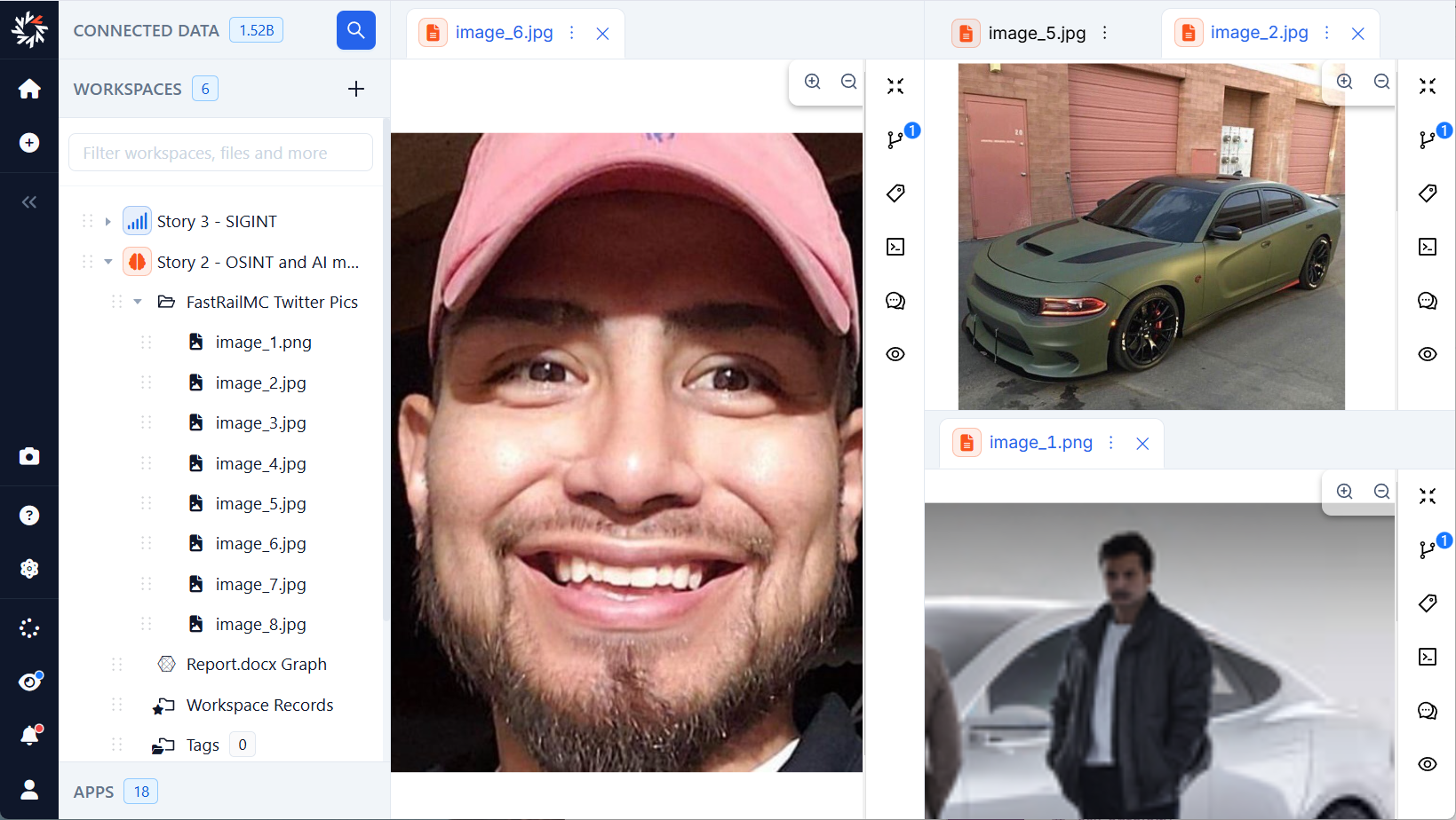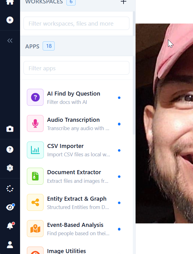 - Multimedia Capabilities: Upload videos, audio, images, and documents for analysis—Octostar can handle it all. Search for faces or similarities in pictures and videos.