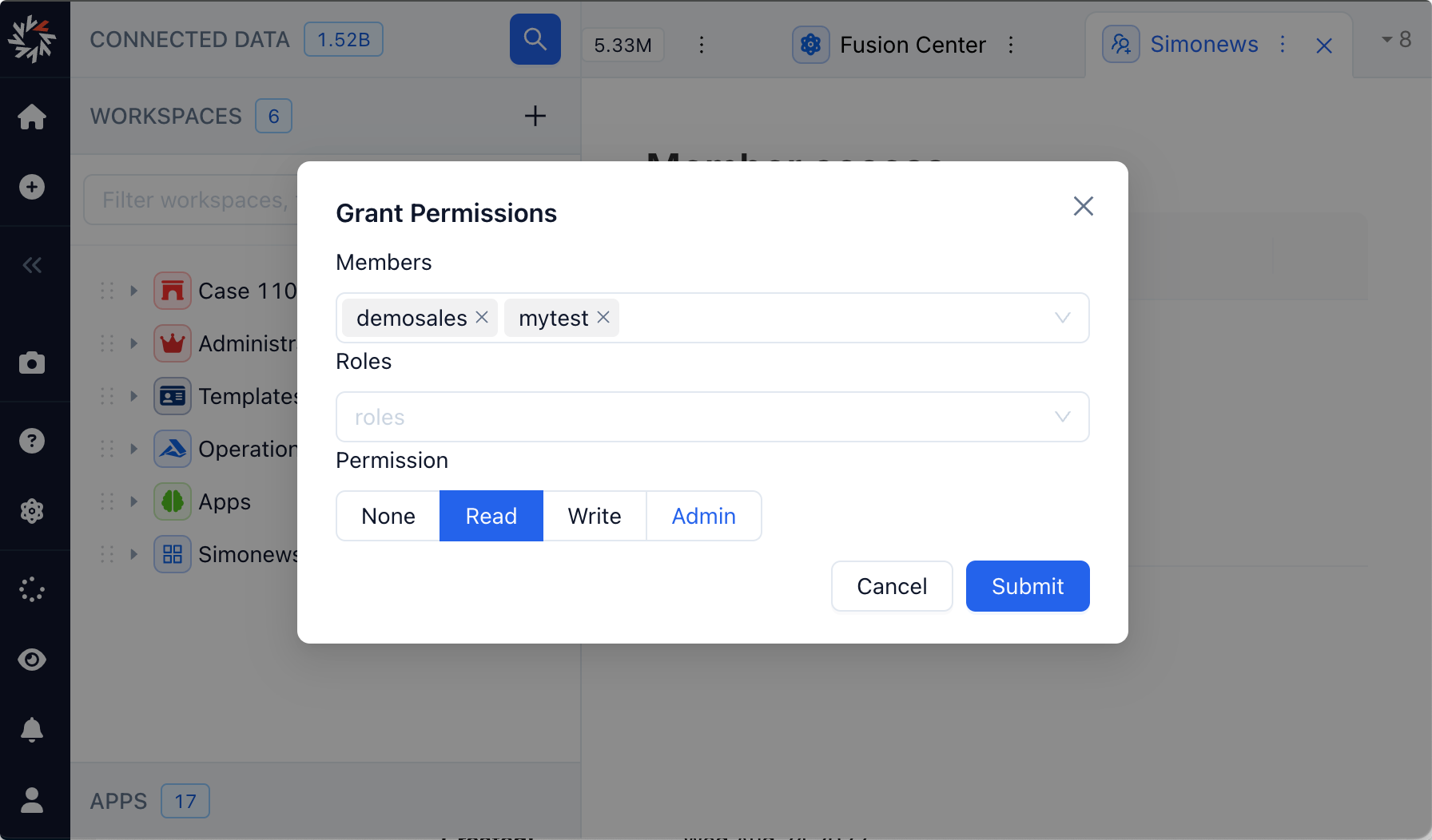 Workspaces access levels in Octostar are attributed either to users or roles, and describe the acthe classes of operations that can be done within a workspace, and all the resources inside of it collectively.