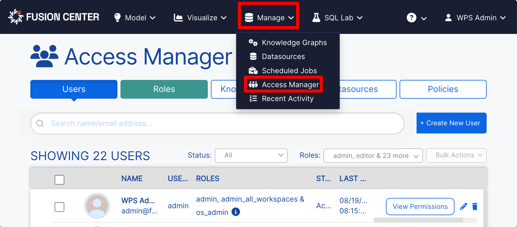 - Fusion Center permissions (govern user access to ontologies, data sources)