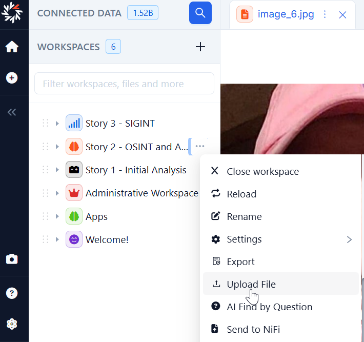 - Files and binaries Each Workspace has a storage space where items can be stores - for examples docx, pdfs, multimedia files etc. Files can also be Octostar native items such as link charts, saved searches and more. Files can be moved in and out of folders, across workspaces (given the right permissions) and uploaded from / downloaded to individually or in bulk (given the right permissionts)